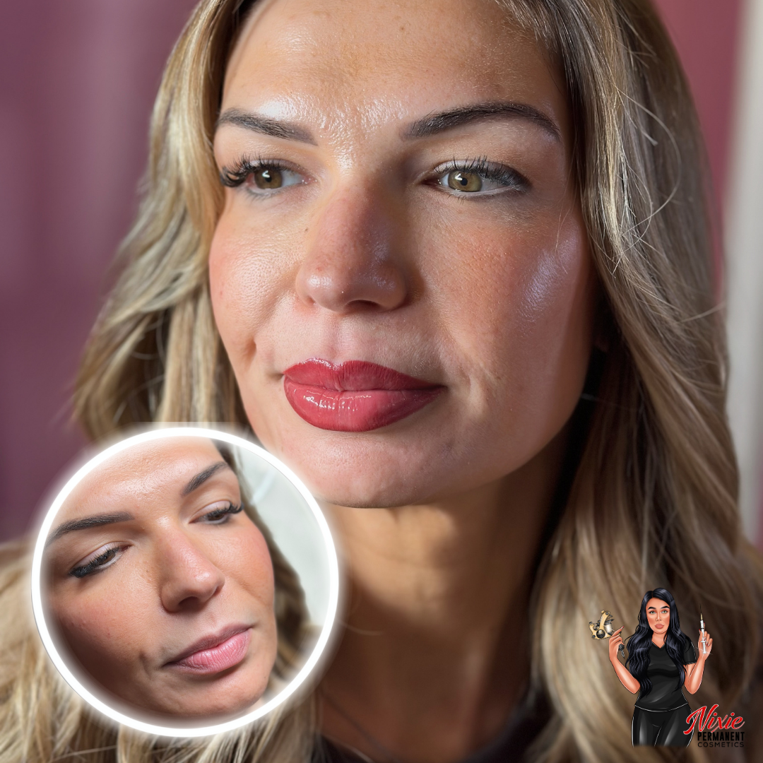 Suitable for any & every age, Lip Blush is the perfect enhancement for those who have Lip Fillers. It's also great for ladies wanting more definition, volume & colour in their lips. I offer a very wide range of bespoke Nixie shades, & always have your 'healed' goals in mind. It's good to know that Lip Blush always looks a lot more bold until they've peeled (approx 5 days).